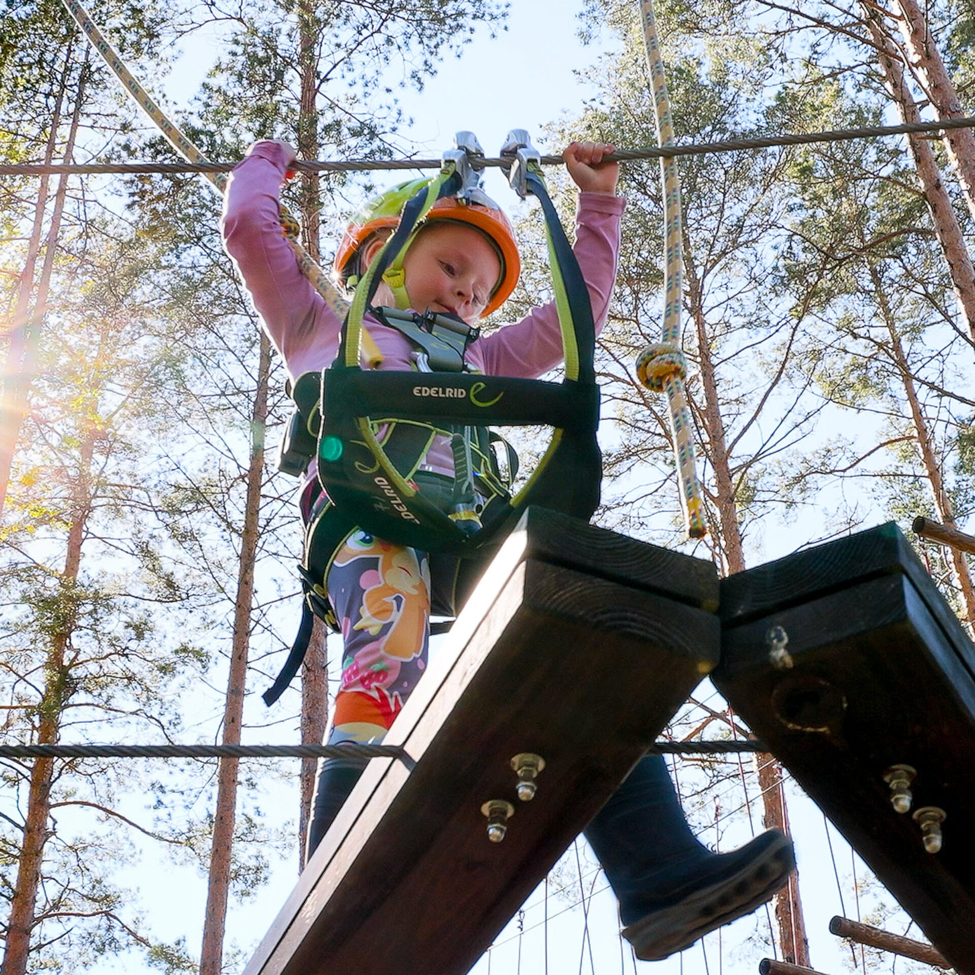 Jämi Adventure Park has five tracks of different levels for beginners and those looking for more demanding tracks. The minimum length of climbers is 110 cm.