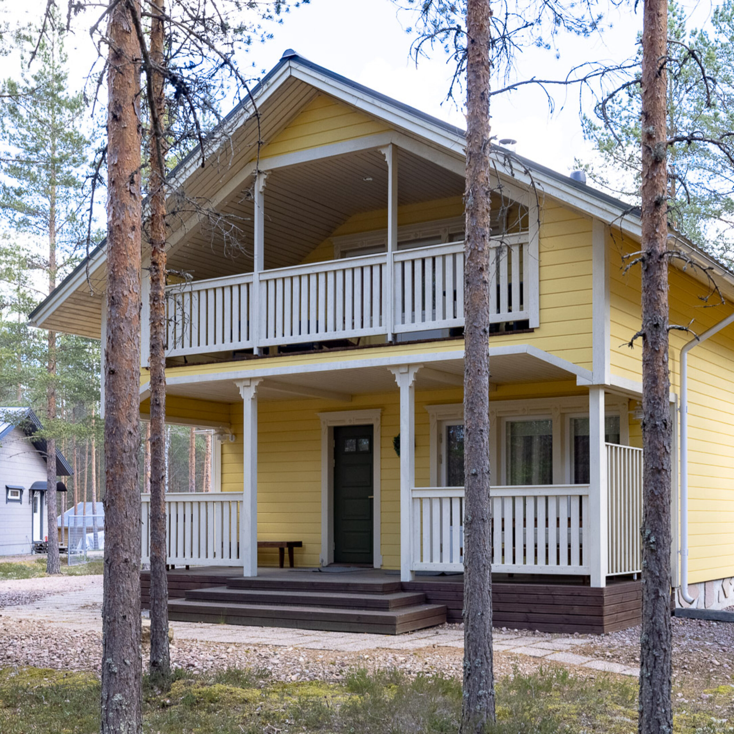 Hyvin varusteltu ja viihtyisä Lumikki-mökki Perhepuiston alueella tarjoaa puitteet koko perheen iloiseen ja aktiiviseen lomaan.